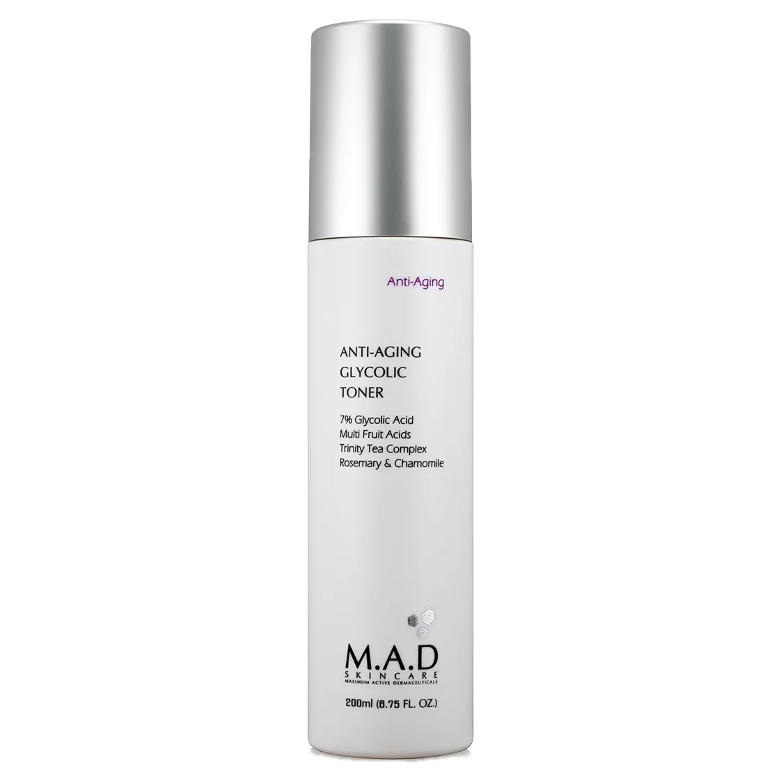Effective exfoliation without the typical irritation from Glycolic Acid. A superbly balanced toner designed to maximize the exfoliation process in a unique easy to use toner. You will feel the difference when you apply the Anti-Aging Glycolic Toner. A perfectly balanced blend of Multi Fruit Acids and Glycolic Acids do all the work. Infused with antioxidants such as our Trinity Tea Complex to fight free radicals and protect the skin and skin calmers including Oat Extract, Chamomile and Aloe Vera to minimize irritation normally associated with Glycolic Acids. Oat extracts also provide anti-inflammatory and anti-redness benefits as an amino acid rich complex for natural UVA protection and accelerate cellular repair. Alcohol-free.