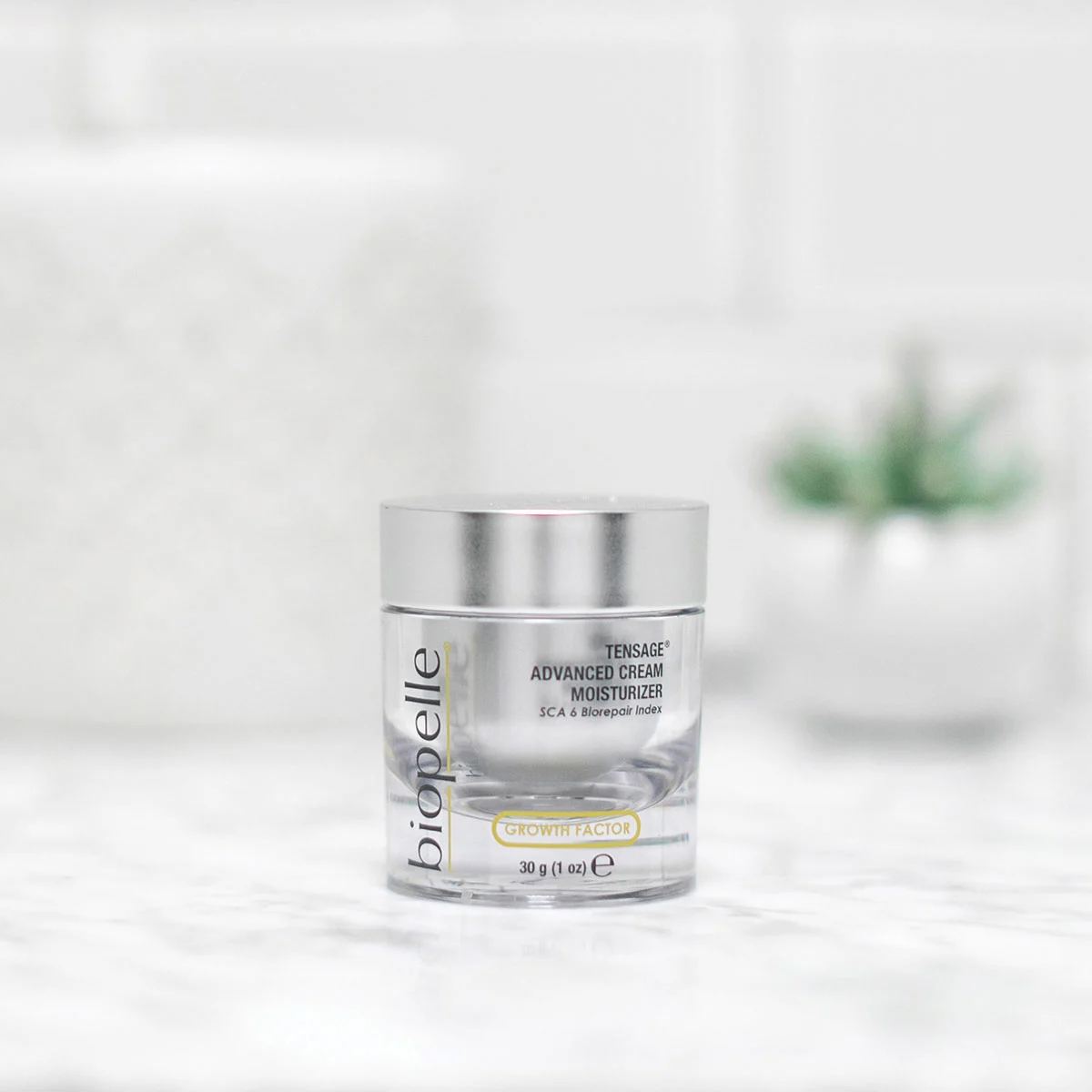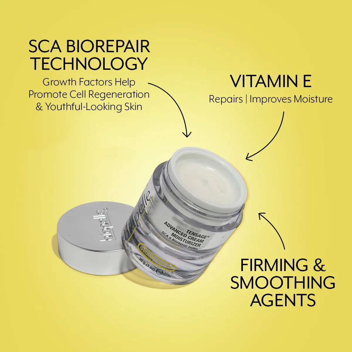 A highly emollient, richly textured moisturizing cream with growth factor benefits as well as Vitamin E to help address signs of aging and skin damage. Additionally, Tensage Advanced Cream Moisturizer uses skin firming agents to help improve the appearance of firmer, smoother looking skin.