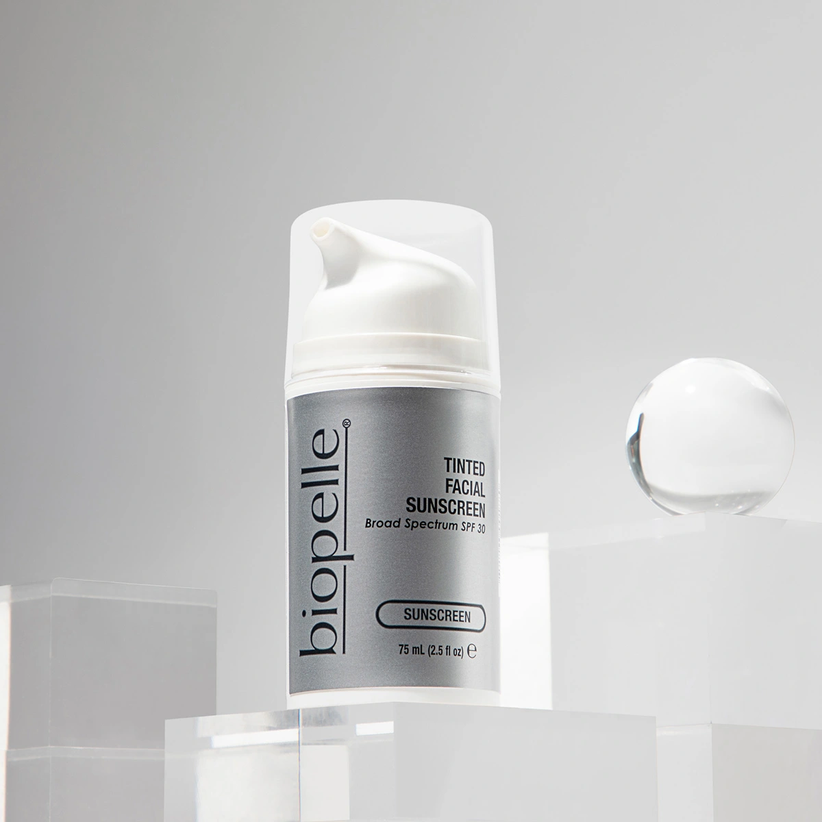 Biopelle Tinted Facial Sunscreen contains microcapsules that burst when rubbed into the skin, providing a subtle sun-kissed glow. Please note that Biopelle Tinted Facial Sunscreen may appear slightly lavender/gray in color when pumped, but as it is rubbed into the skin, the product transforms into a beautiful shade of bronze.