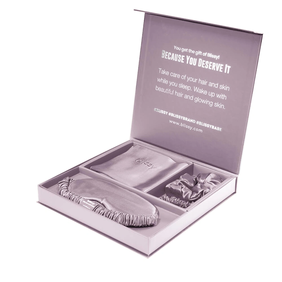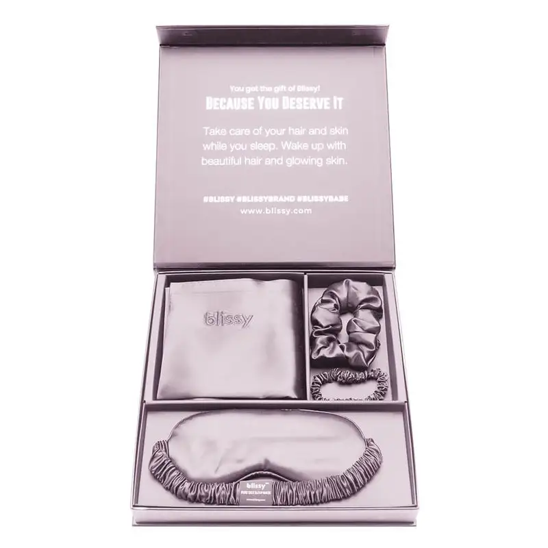 The ultimate beauty sleep set which includes the world’s best silk pillowcase, sleep mask, scrunchie and skinny scrunchie! Blissy silk products are handmade and crafted from high quality 22-Momme 100% Pure Mulberry Silk. We have spent countless hours prototyping, testing and using our products to ensure the highest quality and durability.