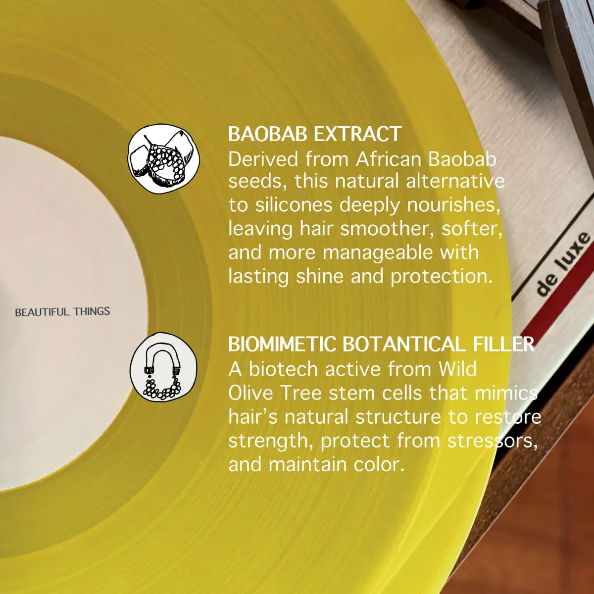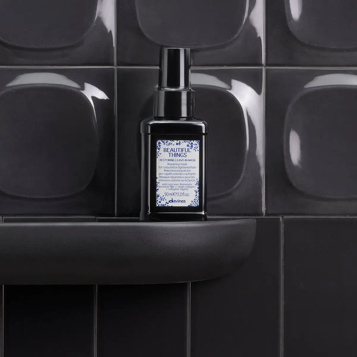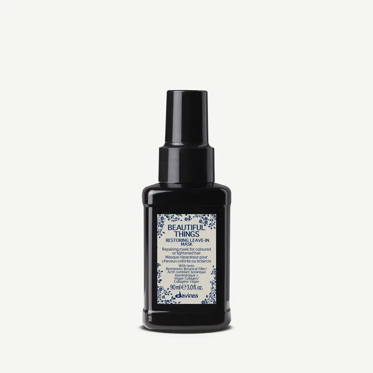 Part of the new Beautiful Things Line, this repairing and restoring leave-in hair mask protects daily damage while delivering softness, shine, and long-lasting colour. Powered by Biomimetic Botanical Filler and Vegan Collagen, it repairs the hair fiber, restores essential lipids, and shields against UV rays, pollution, and heat upt to 230°C/450°F. The result? Hair that feels softer, smoother, and instantly shinier –