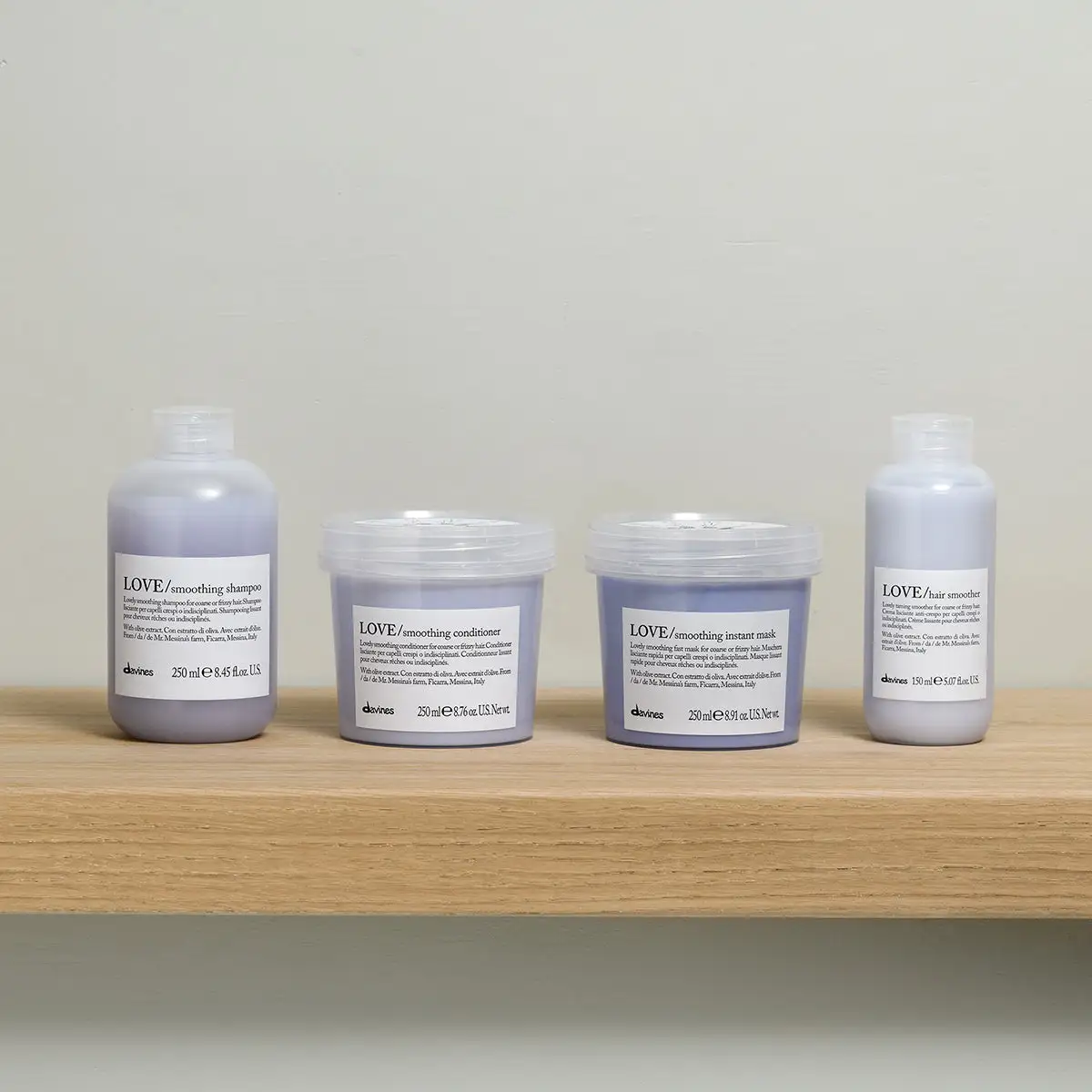 The ideal anti-frizz conditioner to control frizzy or curly hair, LOVE Smoothing Conditioner moisturizes the hair, helps restore elasticity and leaves an unmistakable shine behind. LOVE Smoothing Conditioner is best paired with our LOVE Smoothing Shampoo for a complete, natural hair conditioning experience. Formulated with Minuta olive extract, this conditioner is nourishing and softening.