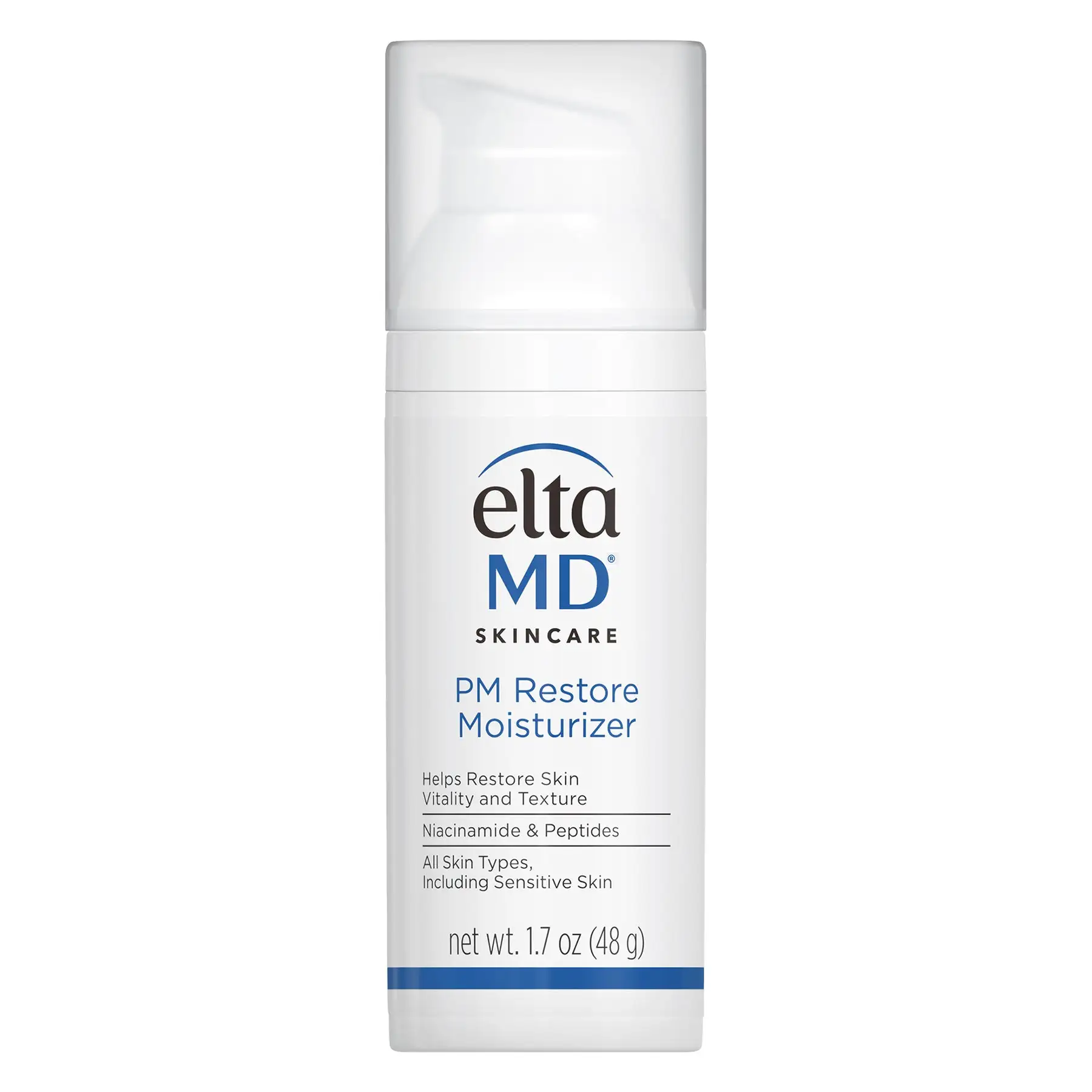 EltaMD PM Restore Moisturizer helps restore skin vitality and texture. Niacinamide and antioxidants help improve skin tone and texture, while hyaluronic acid and a ceramide hydrate and strengthen skin’s moisture barrier. The result is skin that looks smoother, brighter and healthy looking. Non-comedogenic, fragrance-free. (net wt 1.7 oz/48 g)