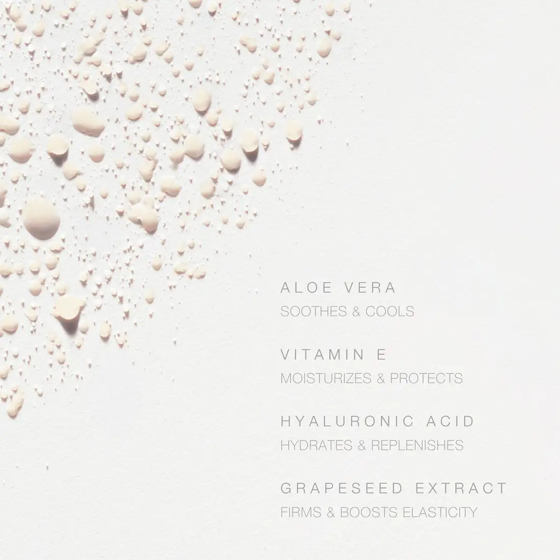 Enriched with a targeted blend of skin-boosting ingredients—Aloe Vera to soothe, Vitamin E to moisturize, Hyaluronic Acid to deeply hydrate, and Grape Seed Extract to support firmness and elasticity.