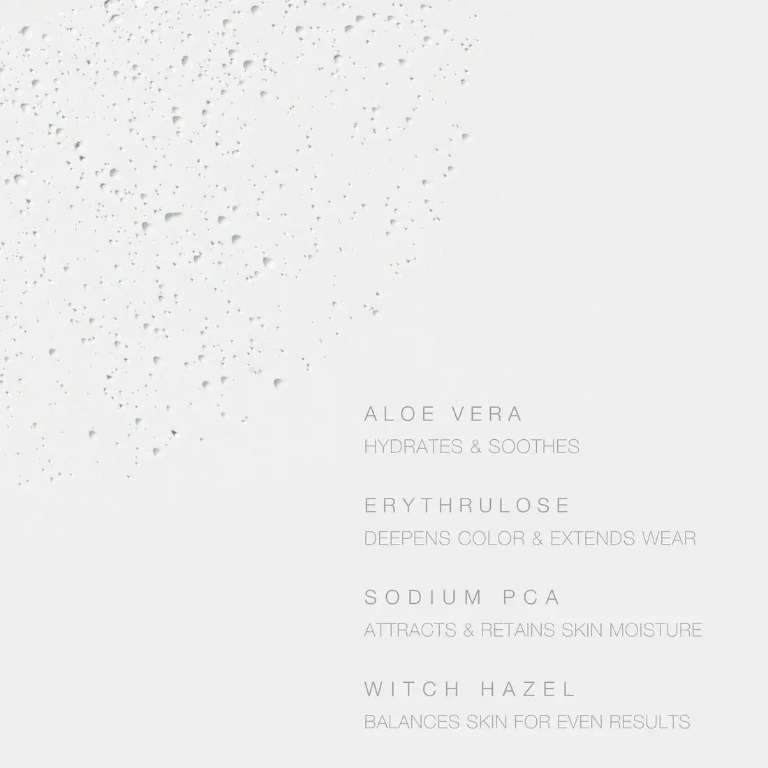 Infused with Witch Hazel, Aloe Vera, and organic Erythrulose (a naturally occurring sugar in red raspberries), this unique mist ensures longer-lasting, streak-free color, all while deeply hydrating the skin and working to improve texture over time.
