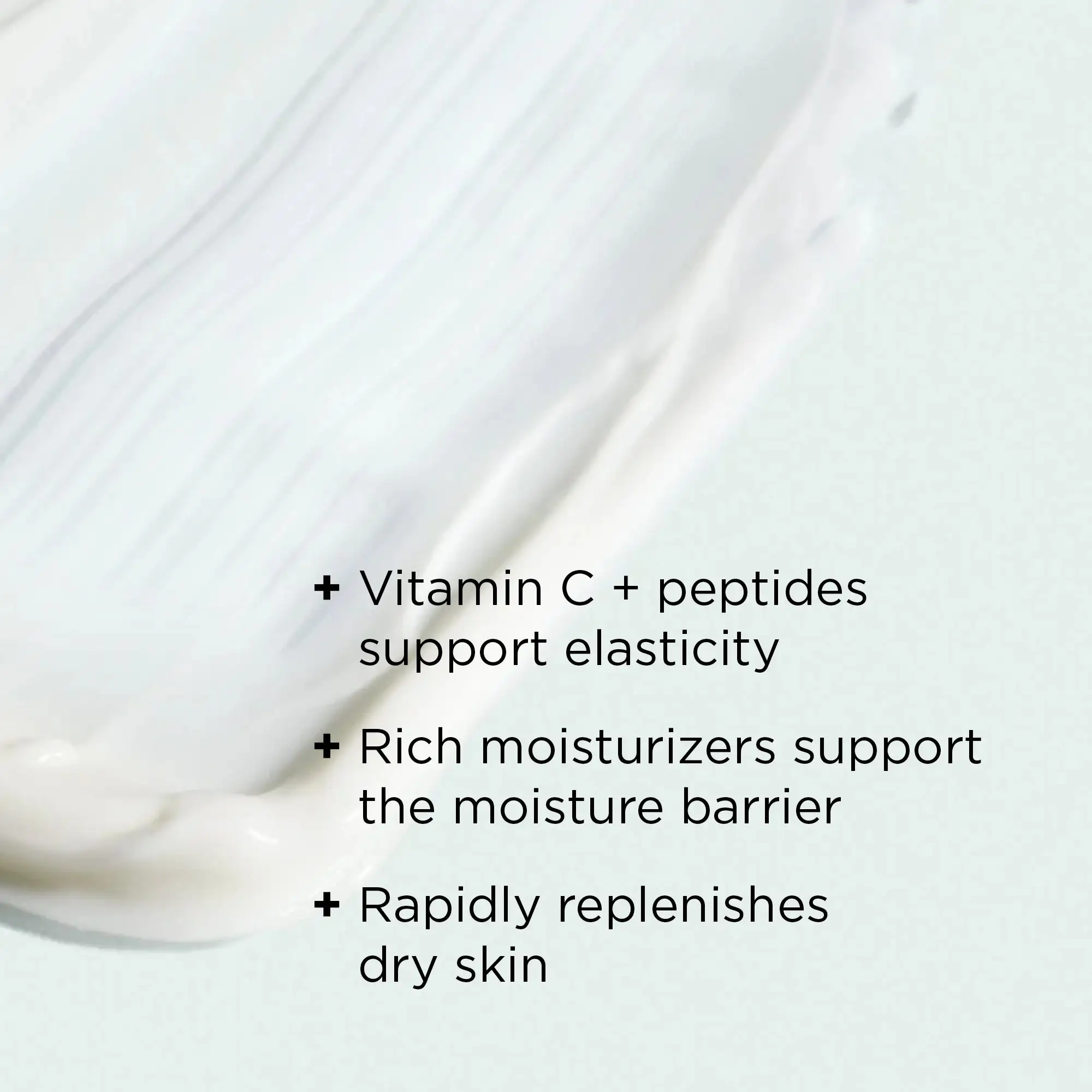 - Vitamin C and peptides promote the appearance of skin elasticity and firmness