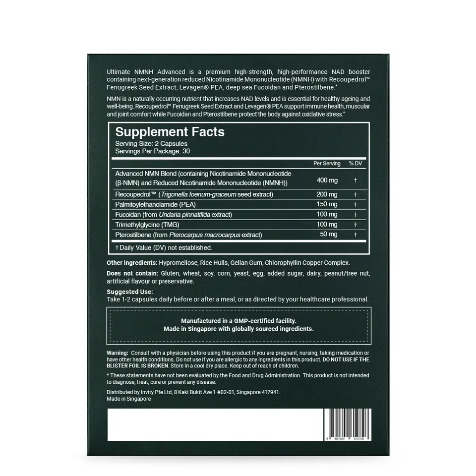 - This high-performance NAD booster is our most comprehensive, highest-dose NMN formula yet. Like Ultimate NMN 12000, it features NMN, Levagen®+ PEA, Fucoidan, Pterostilbene. And we’ve added potent new ingredients like NMNH (10x more powerful than NMN) and Recoupedrol™ Fenugreek Extract for even better cellular rejuvenation, muscle and joint health, and pain relief.