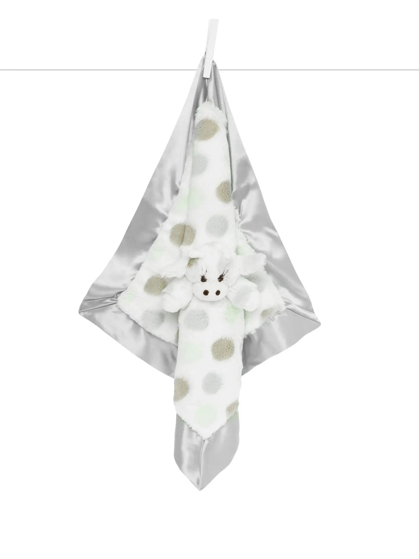 Crafted from ultra-soft Luxe faux fur, this lovey features a silky satin border that adds elegance to its cozy design. The cheerful multi-colored dot pattern pairs beautifully with the embroidered giraffe face, making it as delightful to look at as it is to hold.
