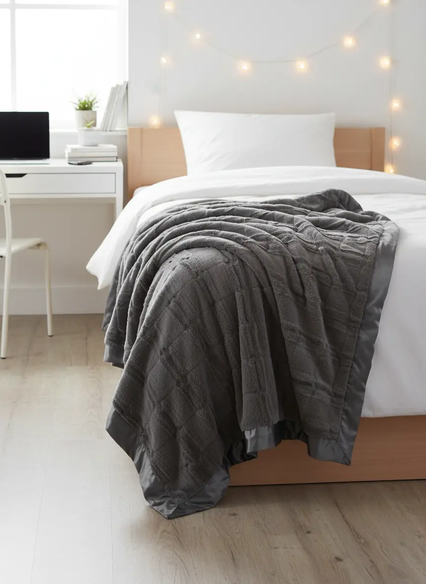 Perfect for big kids, tweens, teens, and young adults, it’s made for cozy movie nights, dorm lounging, lazy weekends, or curling up in bed. Finished with our signature satin trim for a touch of timeless elegance, it’s both indulgent and easy to love.