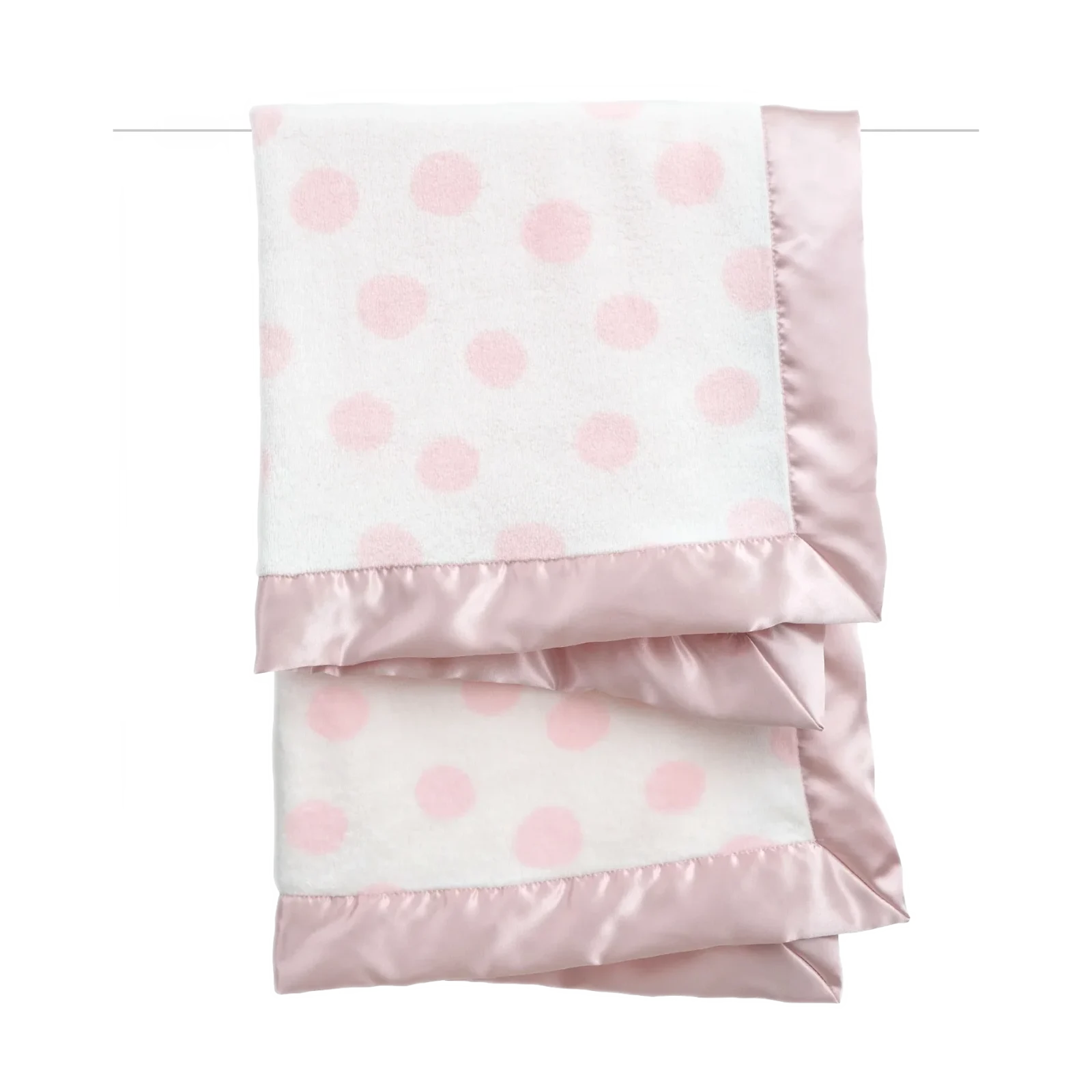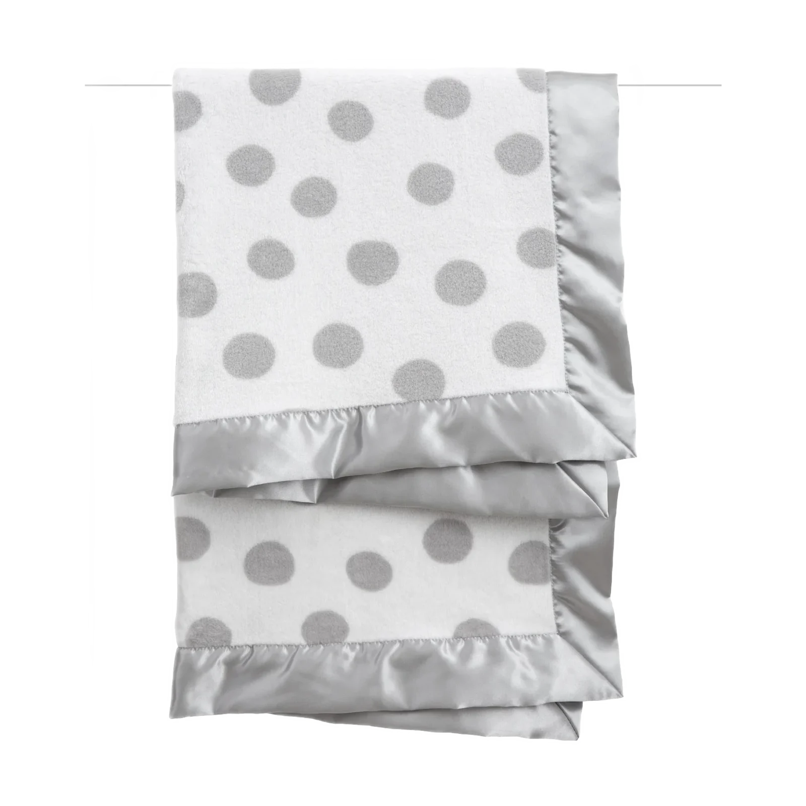 Dots on dots! Baby will LOVE the playful pattern that decorates this lightweight singly-ply blanket. Super soft-to-touch faux fur and a coordinating silky satin frame make this blanket an instant classic and irresistibly cozy.