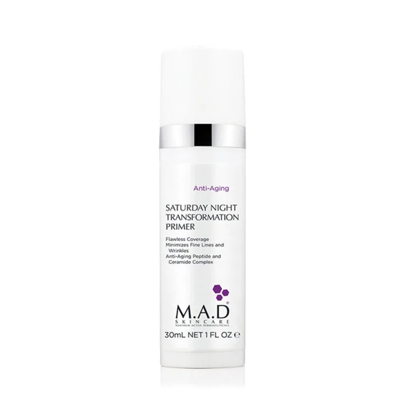 The signs of aging require multiple age fighting ingredients to get you to look your best. M.A. Dermaceuticals combines the best nature and science have to offer, to give you the youth-building, age minimizing performance for lasting results. Saturday Night Transformation Primer is a lightweight tinted primer that offers the appearance of flawless, even skin-tone combined with a powerful peptide and ceramide treatment base.