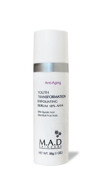 For Best Use: As part of a daily skin care routine, cleanse face with M.A.D Age Diffusing Cleanser, pat try. Follow with M.A.D Anti-Aging Glycolic Toner to prep skin for best possible results. Apply a thin layer of Youth Transformation Exfoliating Serum 10% AHA over face and neck.