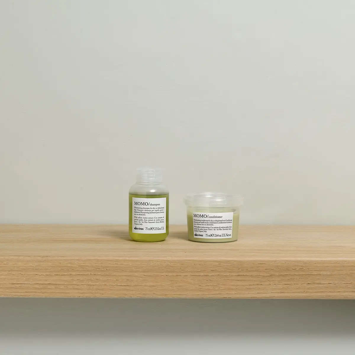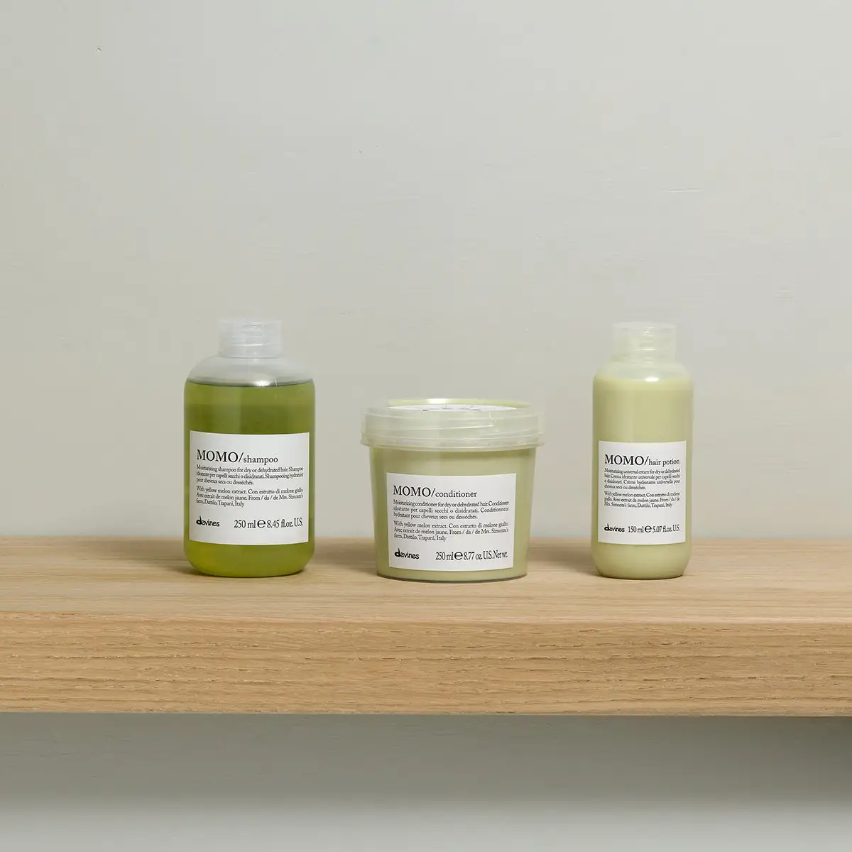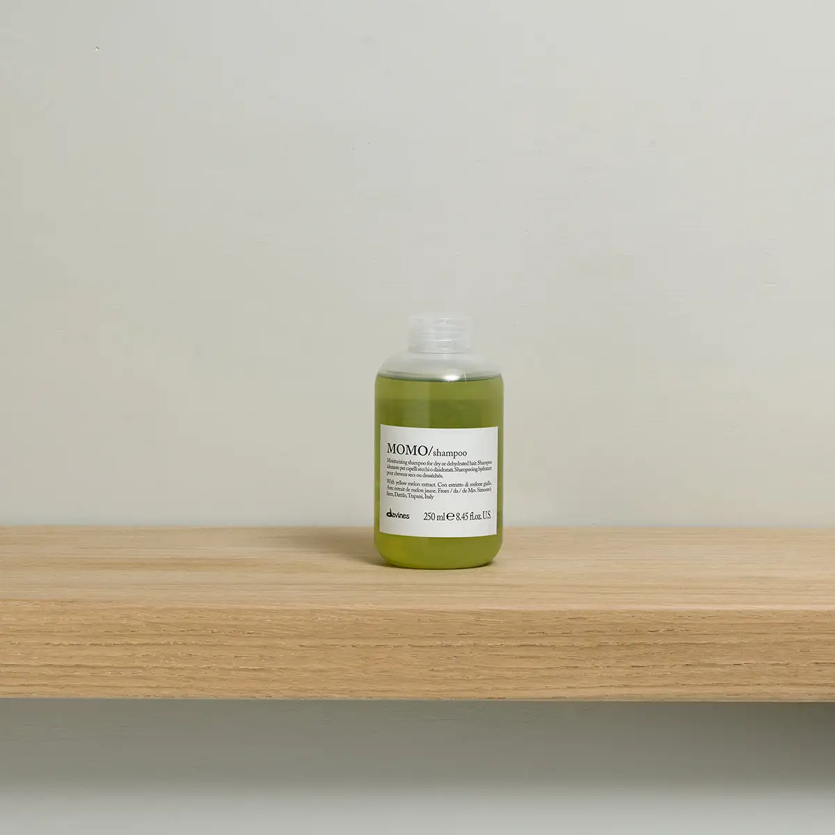 Apply to wet hair. Massage in gently and rinse. Repeat shampoo application, then apply MOMO Conditioner.