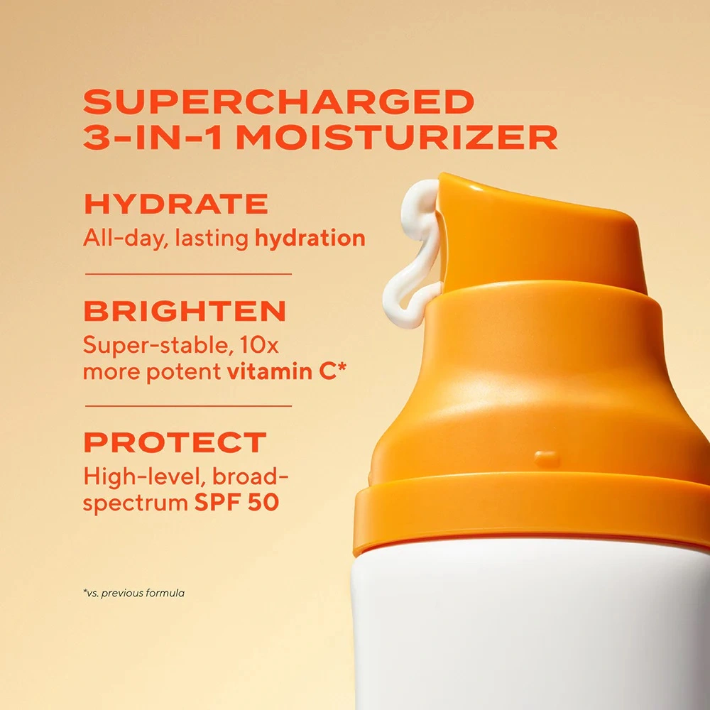 This 3-in-1 multitasking moisturizer delivers all-day, glowy hydration supercharged with 10x more vitamin C* plus high SPF 50 sun protection to visibly brighten after 1 use.