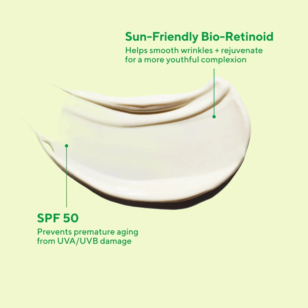 Our bestselling formula, reimagined. This 3-in-1 multitasking moisturizer delivers all-day, radiant hydration supercharged with complexion-smoothing, sun-friendly bio-retinoid, plus premature age-preventing SPF 50 sun protection in 1 step