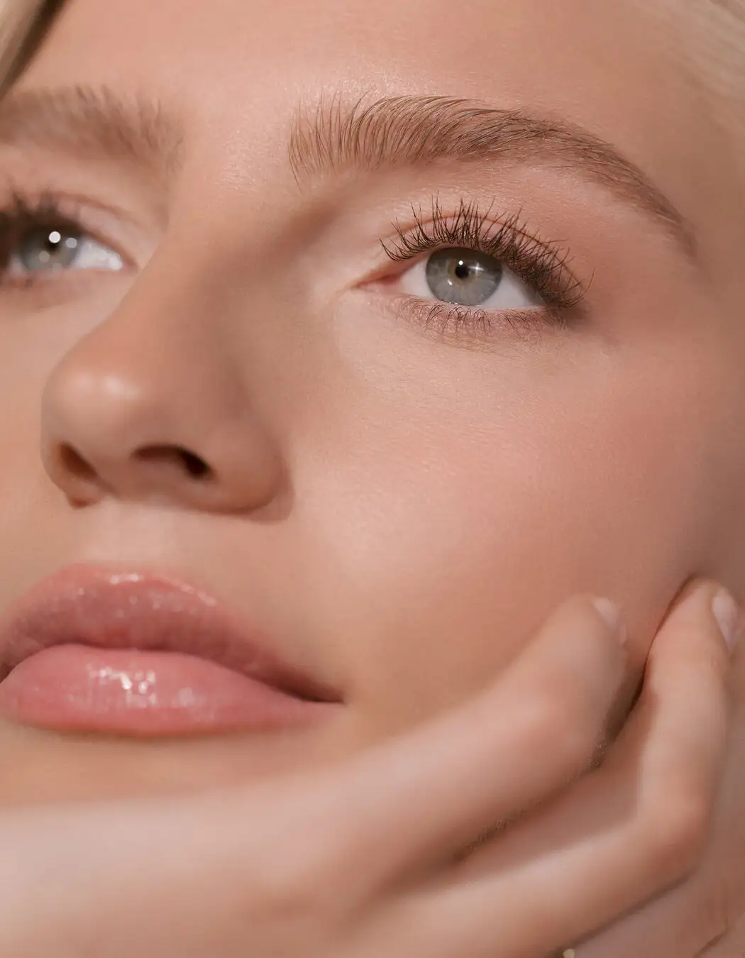 - Tweeze stray hairs around the brow arch, removing only the obvious coarse/dark hair especially between the eyes.