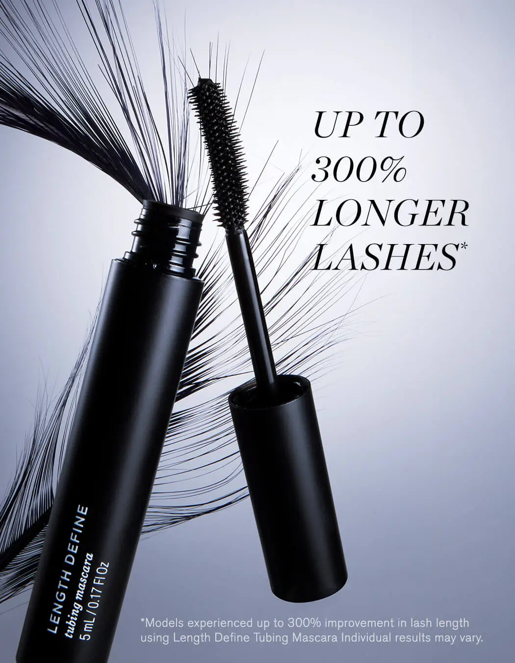 Featuring tube technology, our Length Define Tubing Mascara lengthens, locks in curl, and separates lashes. Its unique brush lifts and extends while evenly distributing the smooth, nourishing, non-flaky formula from root to tip. This formula creates a glossy, fanned-out effect for more noticeable lashes, while ensuring gentle removal, delivering everything lashes need to reach epic lengths.