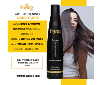 Thinning hair needs perfectly-balanced products to nourish without weighing it down. That is why customers love dermatologist-formulated Revivogen MD Thickening Conditioner.