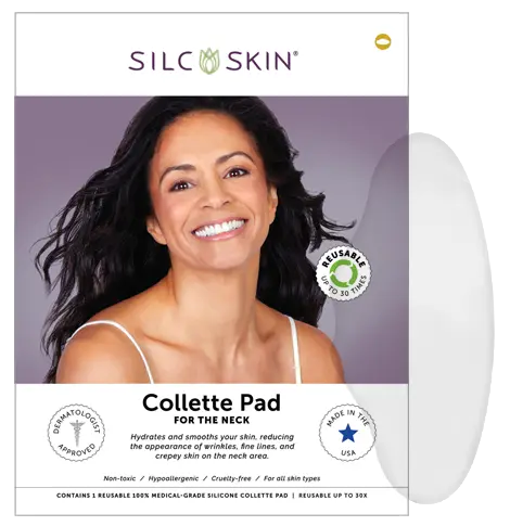 Our Collette pads are specifically designed for the neck where sun exposure, aging and gravity wreak havoc on this area. They are very discreet to wear anytime of day. Made of 100% medical grade silicone, they contain no allergy causing latex, urethanes, or adhesives.