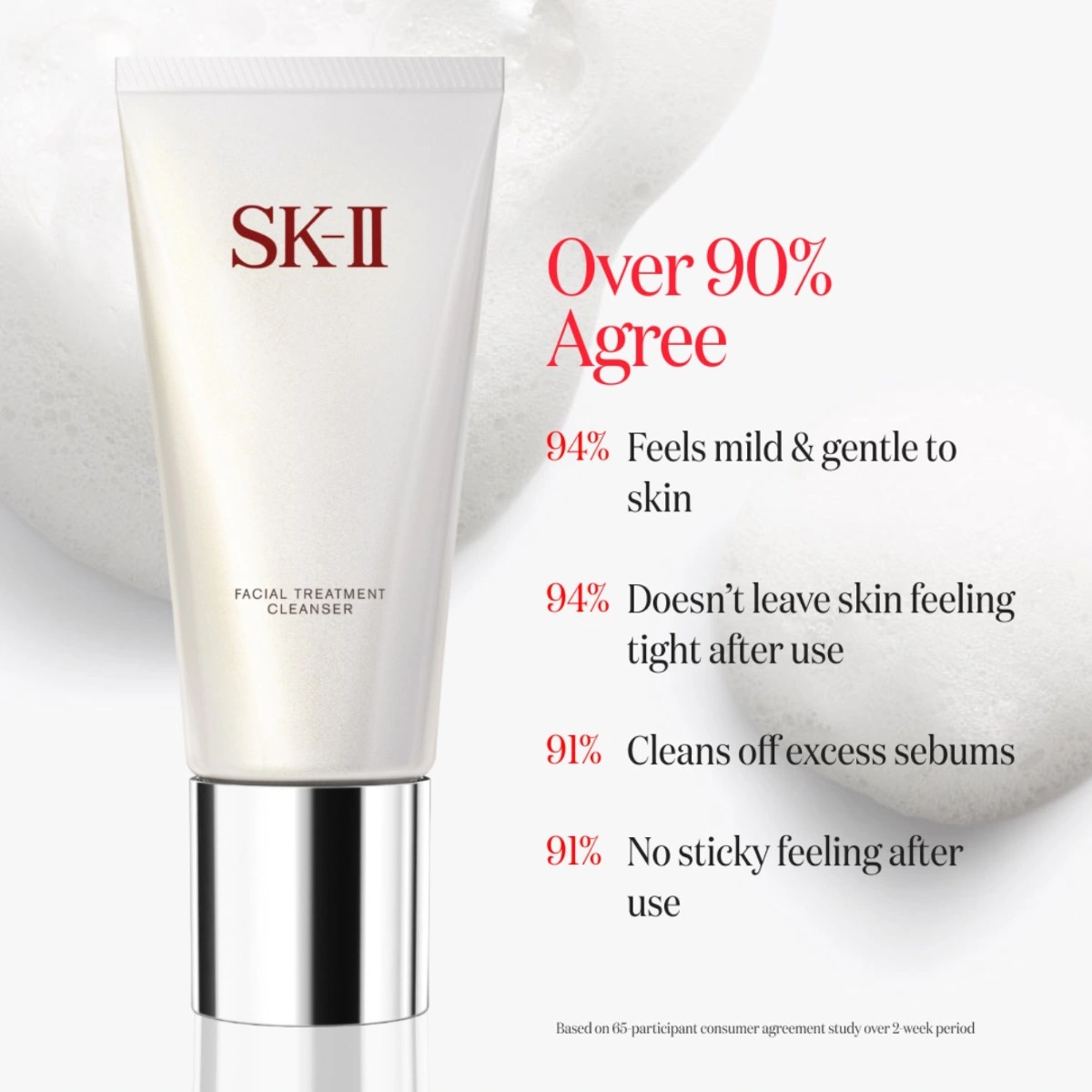 A foaming, hydrating cleanser that gently removes impurities for clean, silky soft skin. Formulated with SK-II’s signature ingredient PITERA™ and skin-conditioning ingredient White Willow Extract to take your skin to the next level. Over 90% agreed this cleanser feel gentle on skin.