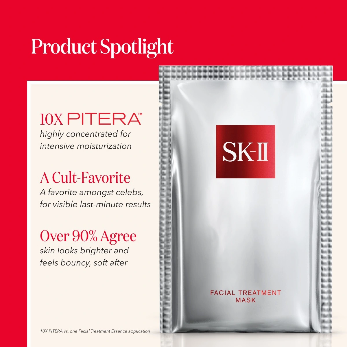 Facial Treatment Mask: Water, Galactomyces Ferment Filtrate (PITERAâ„¢), Butylene Glycol, Xanthan Gum, Sodium Salicylate, Methylparaben, Disodium EDTA.