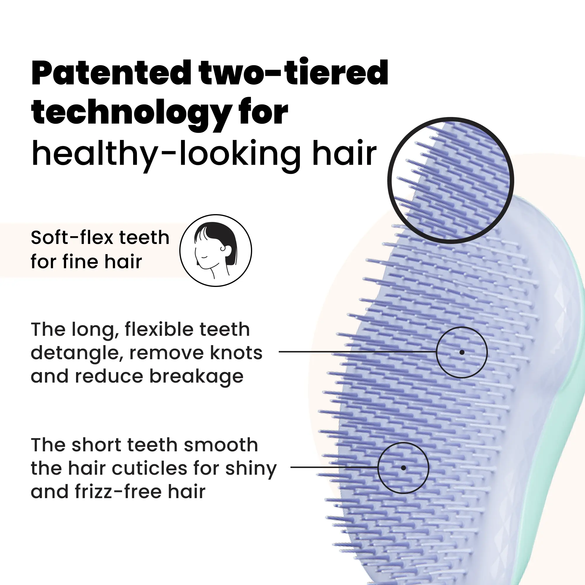 Take the fear out of brushing your fine hair. Our Fine & Fragile detangling hairbrush is designed for colour-treated, fine or fragile hair. Detangling wet or dry hair with its two-tiered soft-flex teeth – they’re 30% softer than The Original – it glides from root to tip with no pulling and less breakage for tangle-free hair.