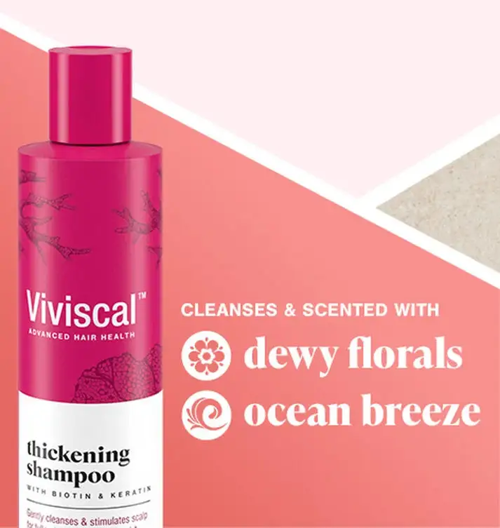 Viviscal Thickening Shampoo gently cleanses the hair and scalp, leaving your hair looking fuller, thicker and healthier-looking. Our floral fresh signature fragrance, infused with lush greens, dewy florals, and hints of ocean breeze, leaves hair infused with a refreshing scent that lasts. Viviscal Thickening Shampoo promotes gorgeous hair and includes seaweed, marine collagen, biotin, and keratin.