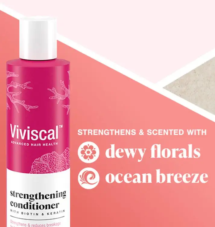 A lightweight conditioner that strengthens^ and promotes the appearance of healthy-looking hair. Viviscal Strengthening Conditioner, formulated with hair building blocks Biotin and Keratin, and fortified with Marine Collagen and Seaweed extract, delivers nourishing hydration without weighing hair down. It contains powerful ingredients that are suitable for everyday use and all hair types including dry, damaged, color-treated, fine and thin hair. Our floral fresh signature fragrance, infused with lush greens, dewy florals, and hints of ocean breeze, leaves hair infused with a refreshing scent that lasts.